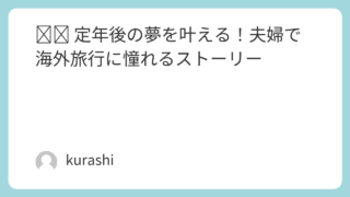 ✈️ 定年後の夢を叶える!夫婦で海外旅行に憧れるストーリー