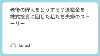 💰 老後の貯えをどうする?退職金を株式投資に回した私たち夫婦のストーリー