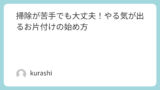 - 「今日はテーブル拭きだけ」「明日は床だけ」と小分けにすると続きやすい。